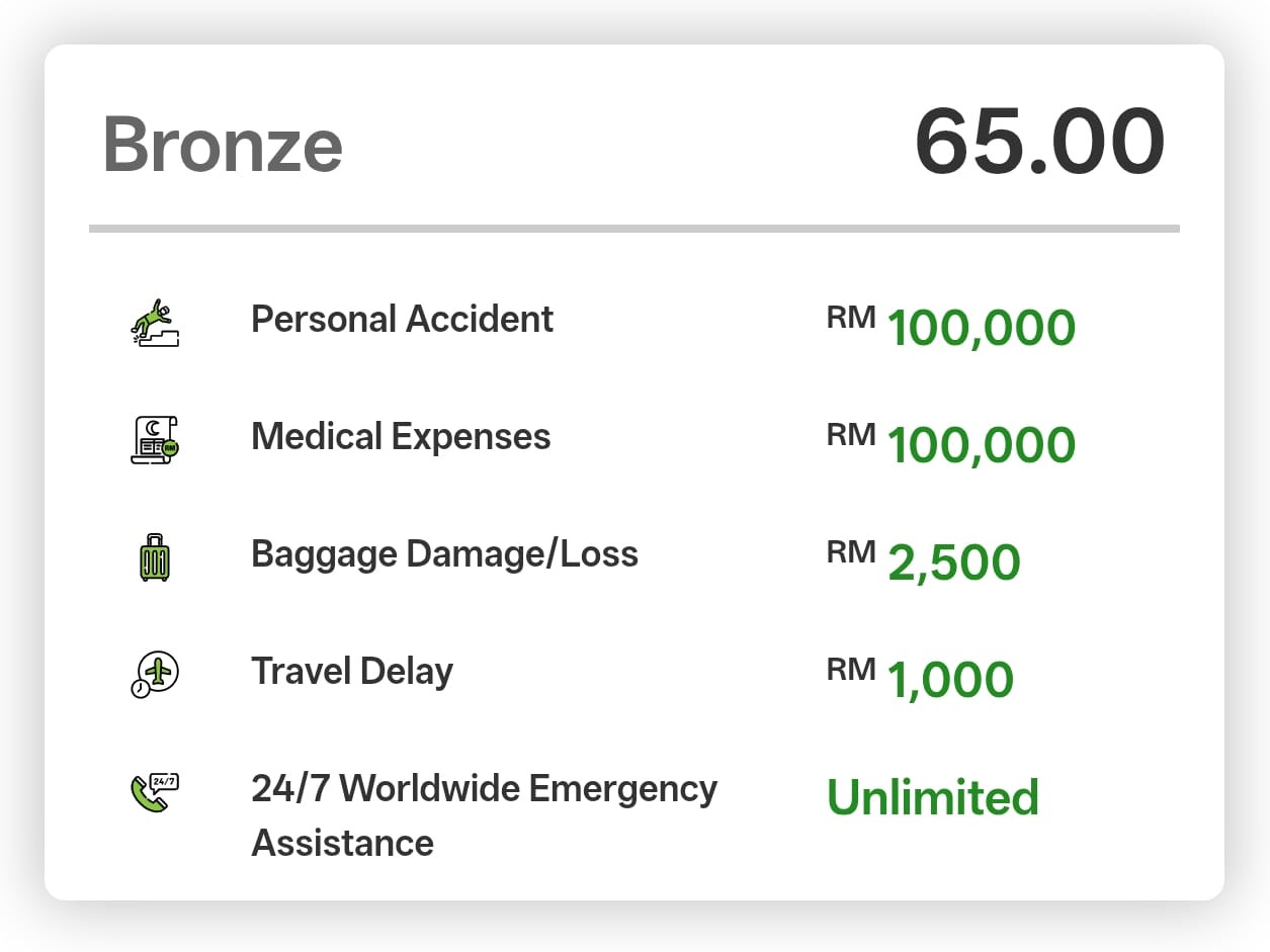Ia menawarkan perlindungan daripada pelbagai insiden tidak diduga, membolehkan anda fokus pada ibadah. Manfaat utama termasuk perlindungan kemalangan diri dan perubatan sehingga RM500,000, bantuan kecemasan 24/7 di seluruh dunia, pemindahan perubatan kecemasan tanpa had, dan perlindungan bagi kesulitan perjalanan seperti penerbangan tertunda atau kehilangan bagasi. Ia boleh disertai oleh rakyat Malaysia atau pemastautin tetap yang berumur 18 hingga 80 tahun, dan juga meliputi anak-anak.