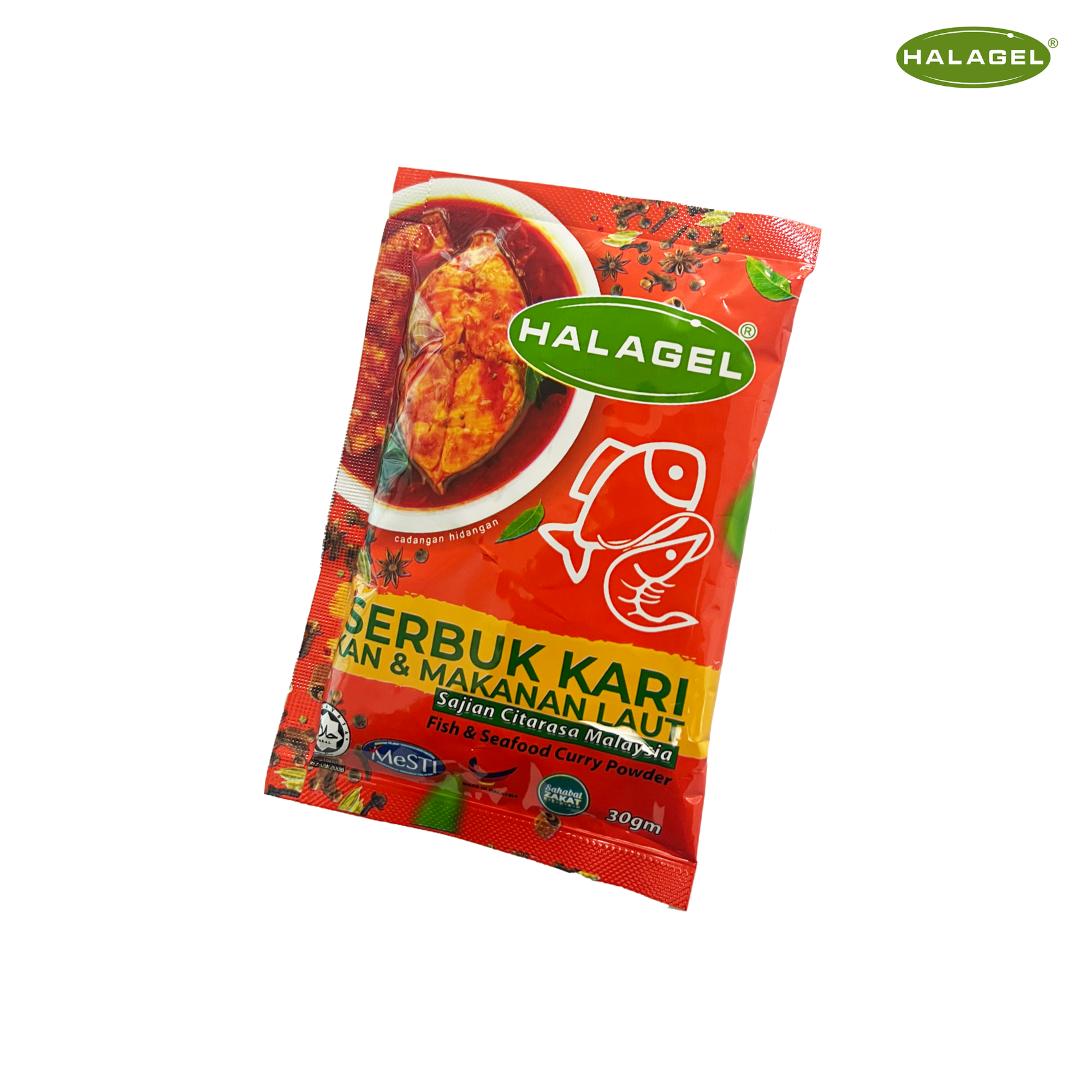 * 1 pek 30gm Serbuk Rempah Kari Ikan & Makanan Laut Halagel® - dibancuh dengan sedikit air