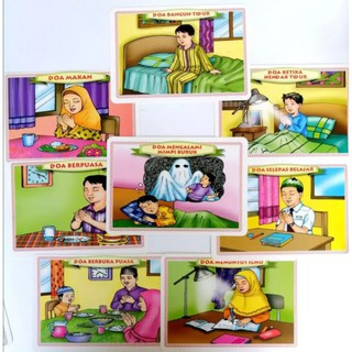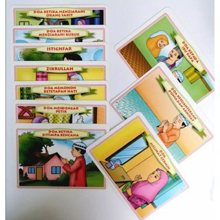 Set ini mengandungi 32 keping kad imbas.bahagian hadapan kad terdapat ilustrasi yang menarik.pada bahagian belakang kad terdapat doa-doa harian.