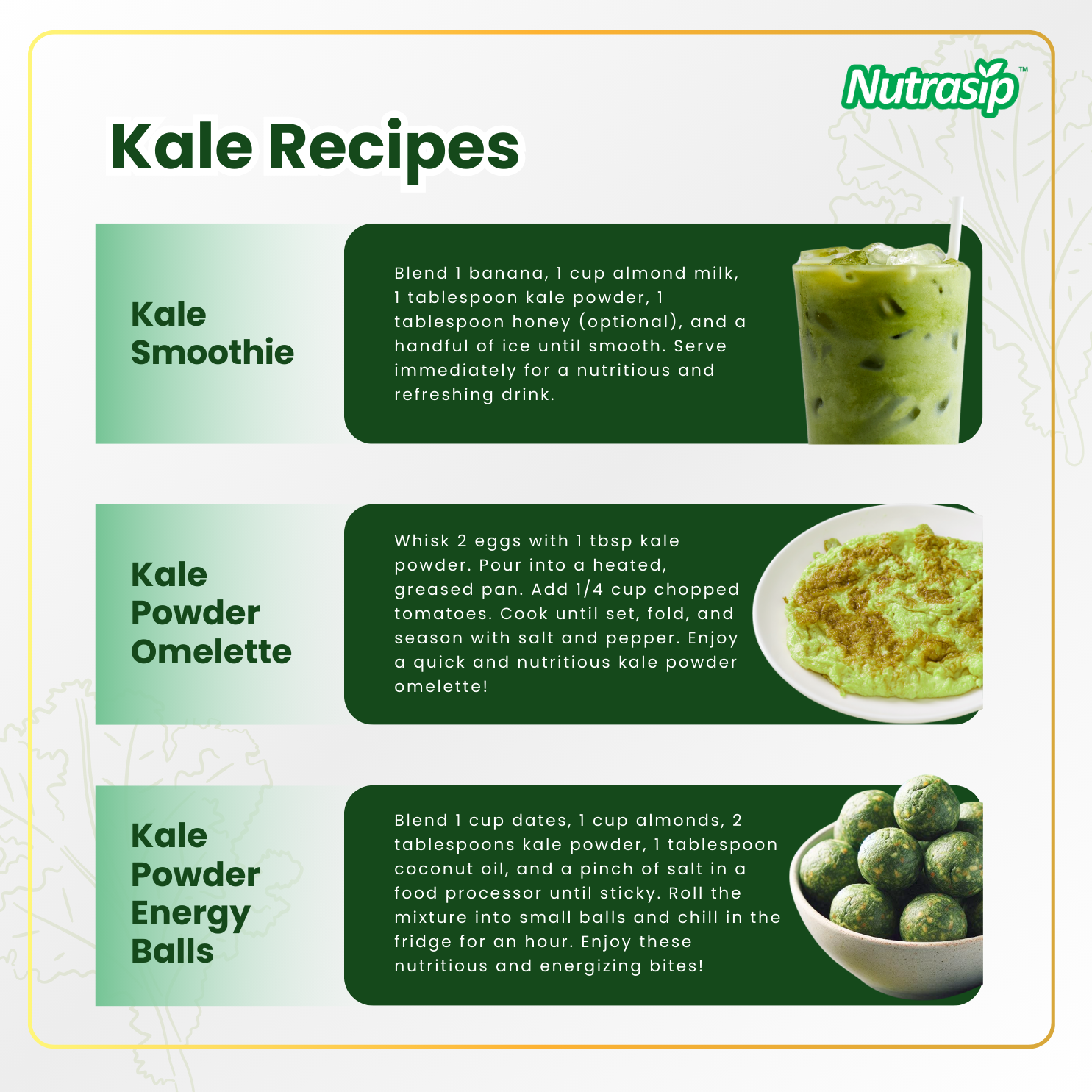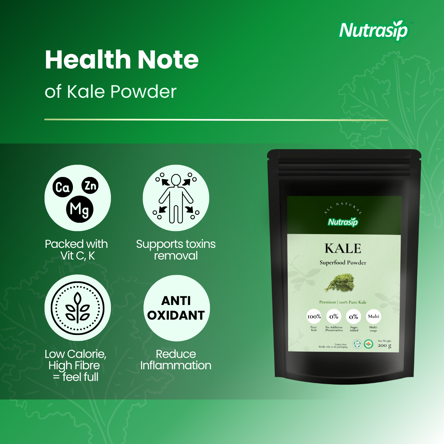 Kale Powder is made from the natural leaves of kale vegetable trough hot air drying. These process of kale powder includes, selecting fresh kale, washing, hot air drying, crushing into powder, and sieving through 80 mesh. Kale powder is not only reserves its most original nutrition. It can be use for the super food, beverage, drink and other health care