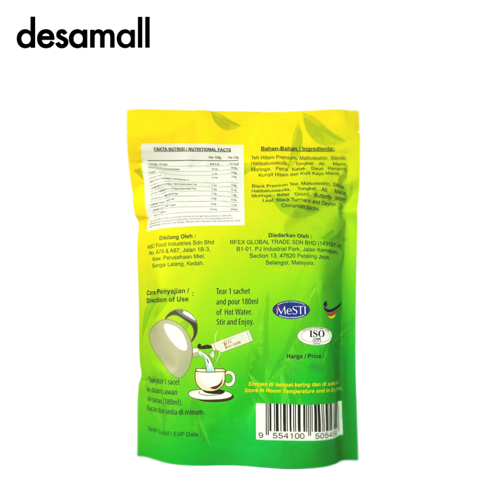 Aromatic Authentic Black Ceylon Premium Tea Premix Taste with 9 in 1 Natural Ingredients/ Rasa Teh Hitam Ceylon Premium Pracampur Aromatik dengan 9 bahan yang Menakjubkan.