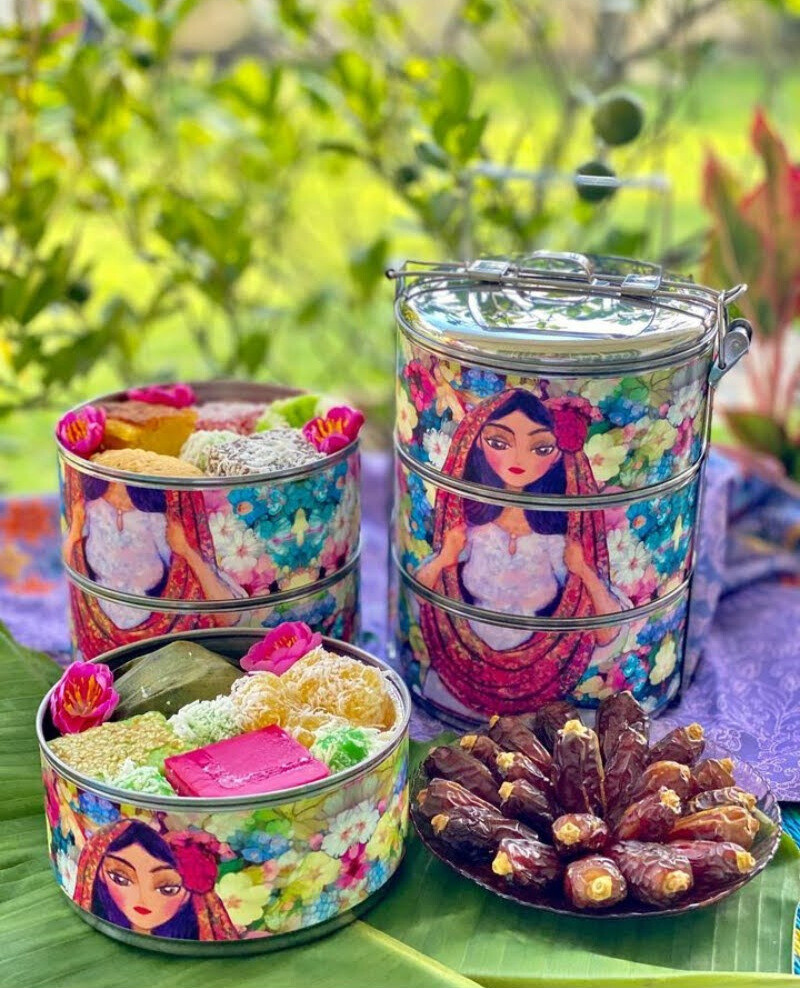 This is a 3-tier tiffin with an original digital hand-drawn design.