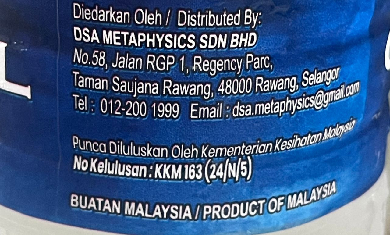 - Produk oleh DSA Metaphysics Sdn Bhd: Air minum ini dipersembahkan oleh DSA Metaphysics Sdn Bhd, syarikat yang dikenali dengan produk-produknya yang unik. 🌟