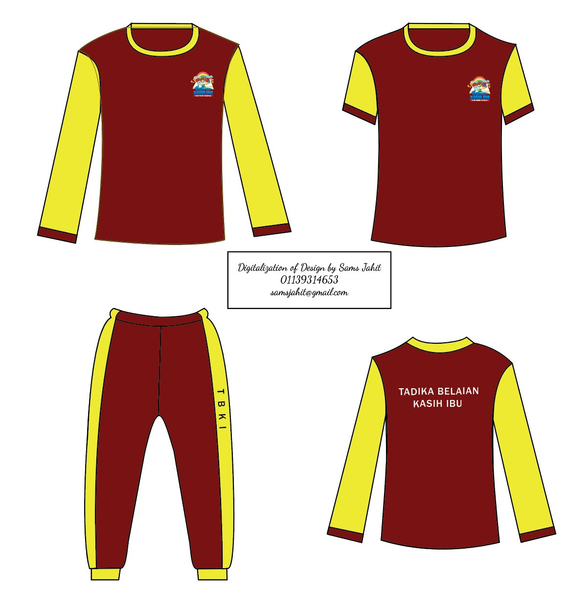 - nama tadika belakang baju (sudah termasuk harga)