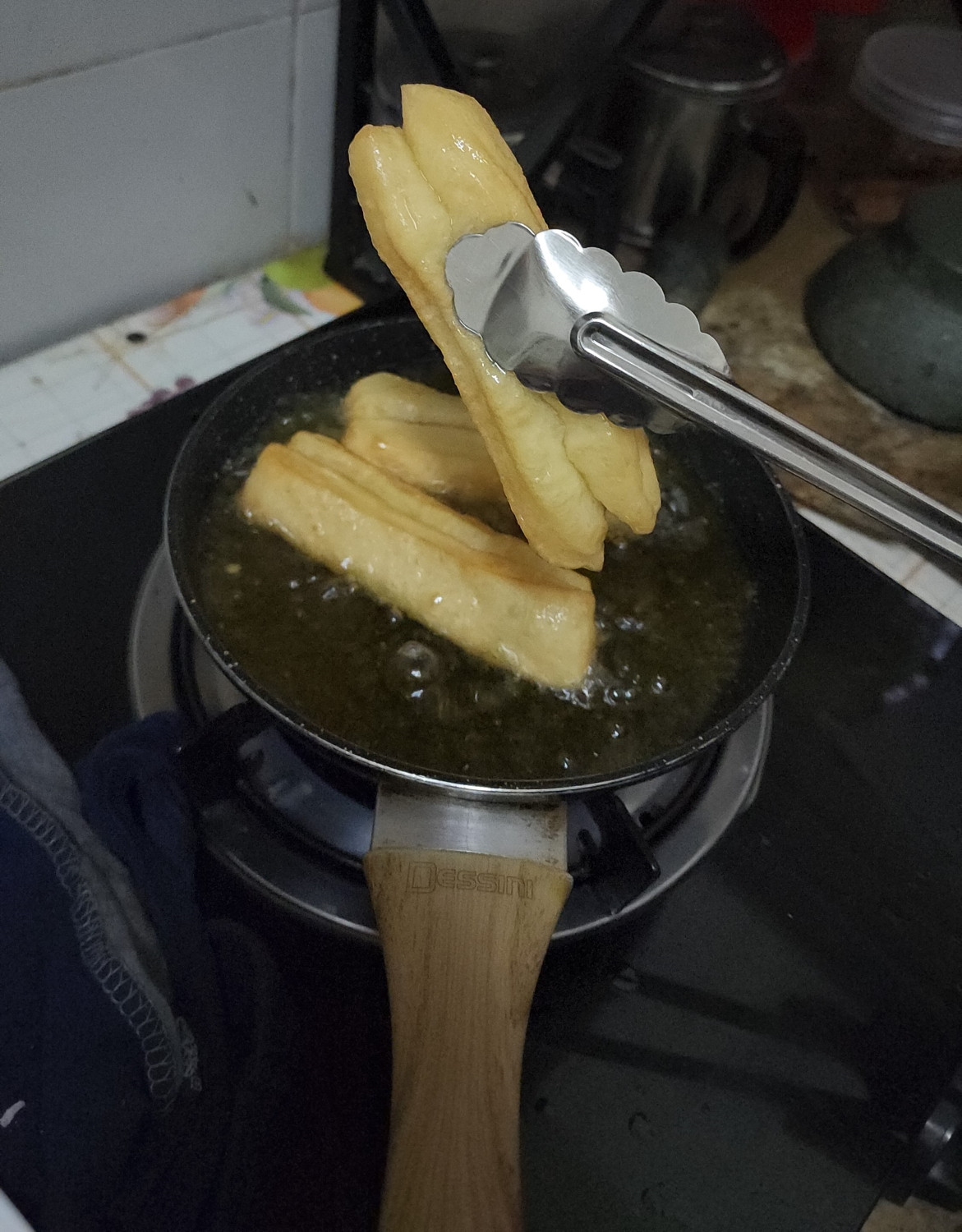 2. Kuali Minyak Panas: Panaskan minyak dalam kuali dengan api sederhana. Pastikan minyak betul-betul panas dengan suhu yang 180'c-200'c supaya cakoi tidak meresap minyak. Goreng Cakoi yang telah dinyah beku sehingga mendapat warna perang keemasan (selama 2-3 minit). Kaedah tradisional ini memberikan tekstur yang rangup dengan kemasan keemasan yang lazat.