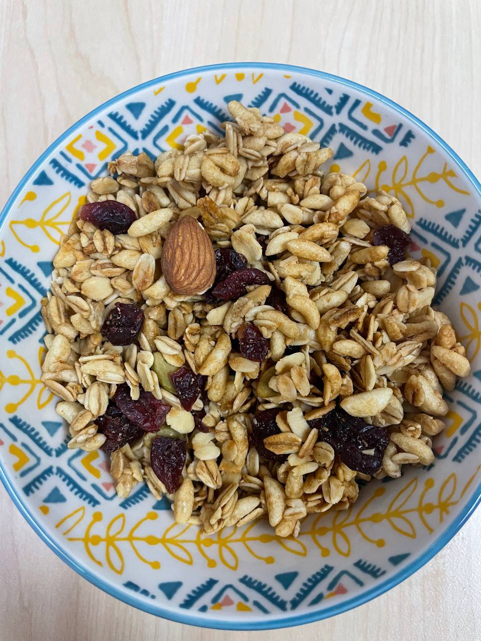 Ingredients: Rolled oat, puffed rice, cranberries, almond, cashew nuts, pumpkin seed, organic molasses, dates syrup, coconut oil.