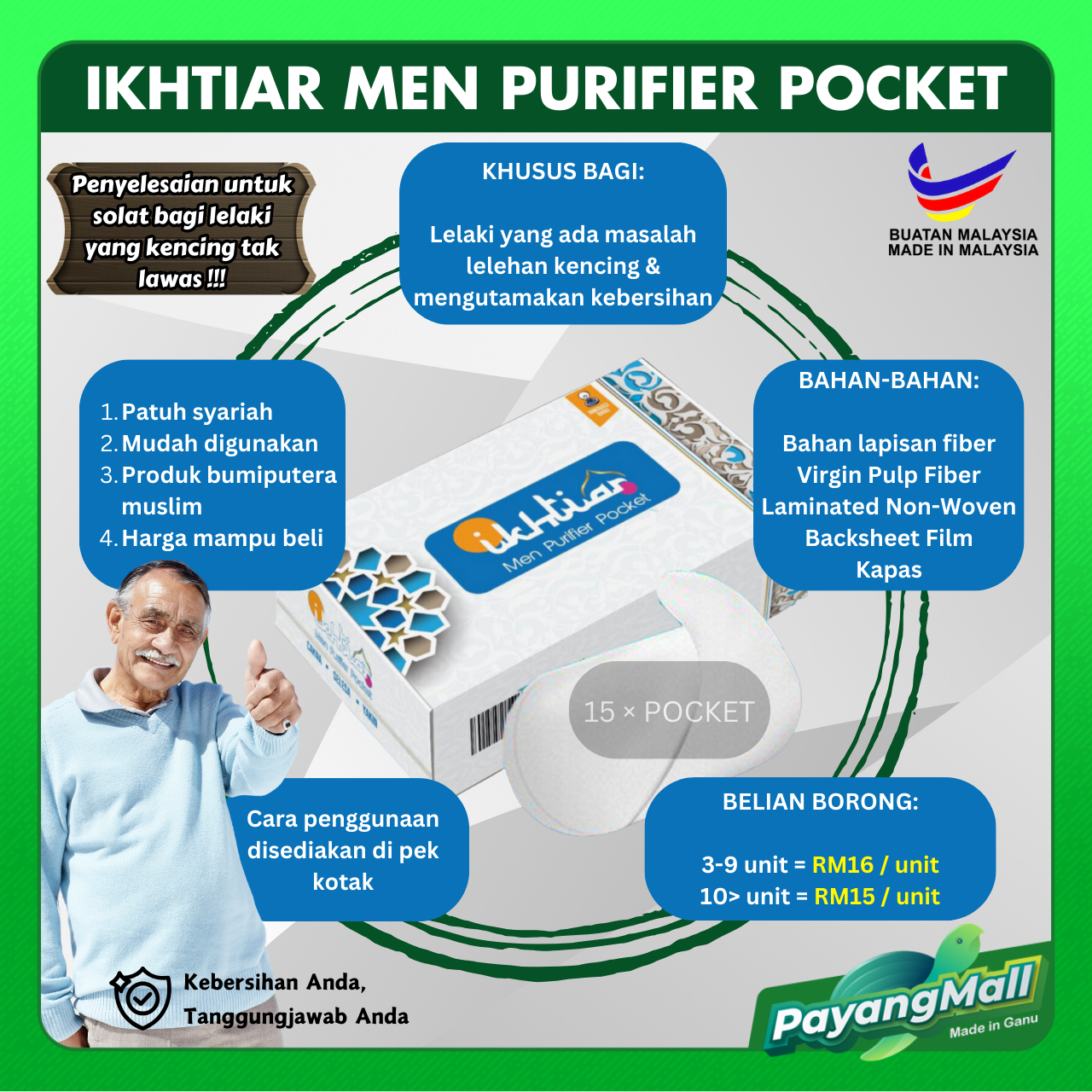 ▶ IKHTIAR melalui MAN PURIFIER POCKET (MPP) menyediakan alternatif (bukan rawatan) untuk anda berada dalam keadaan kemas (patuh syariah) untuk melaksanakan solat/ibadah dengan mudah tanpa was-was.