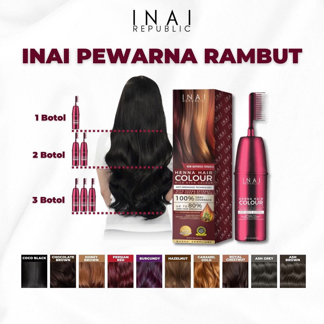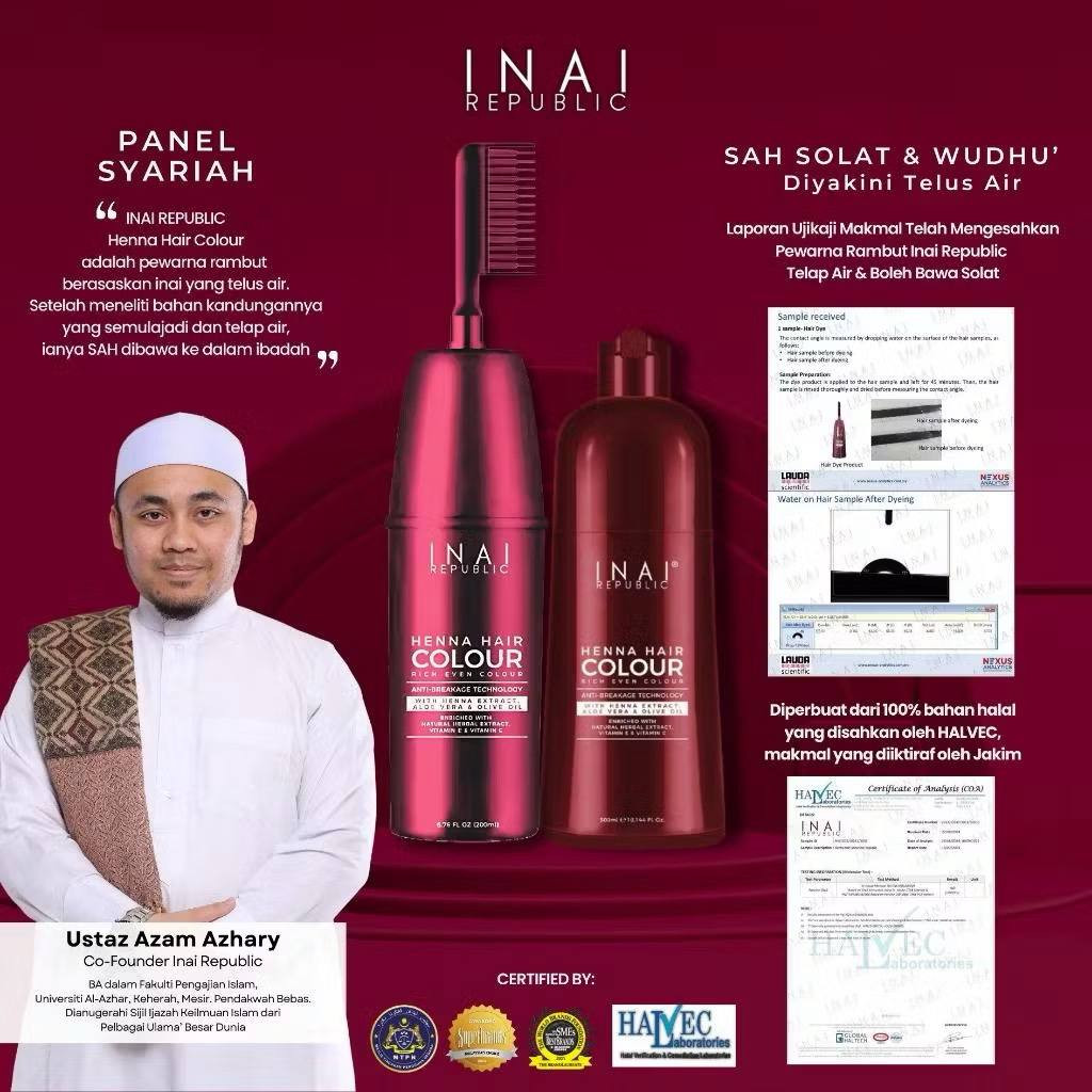Cubalah Inai Pewarna Rambut Telus Air Persian Red, warna merah keperangan lembut yang buat wajah nampak cerah & berseri. Gabungan bahan semula jadi, telus air & mesra solat, tak ada bahan kimia keras, dan yang bestnya bau wangi strawberi.