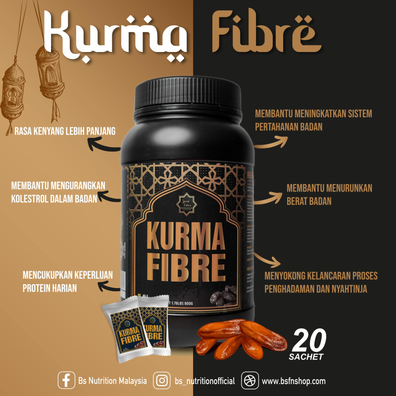 KURMA FIBRE mengandungi protein dan serat daripada oat yang mana akan membantu meberi kekenyangan berpanjangan terutama semasa berpuasa. Kurma Fibre digalakkan ambil pada waktu sahur untuk mendapatkan kebaikan protein dan serat yang maksima.