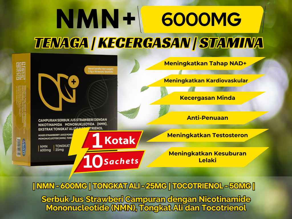 NMN [6000mg] dengan Tongkat Ali & Tocotrienol - 1 Kotak (10 sachet)