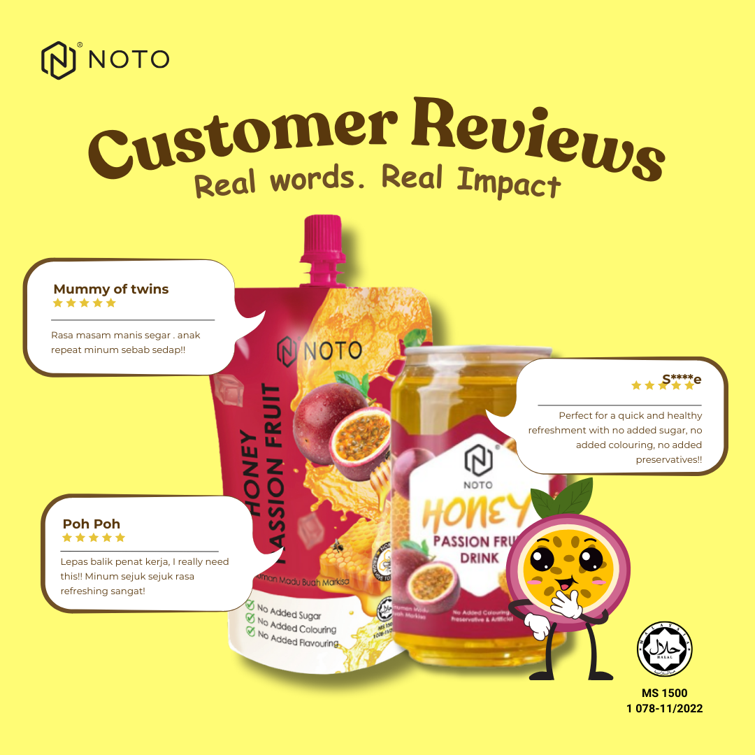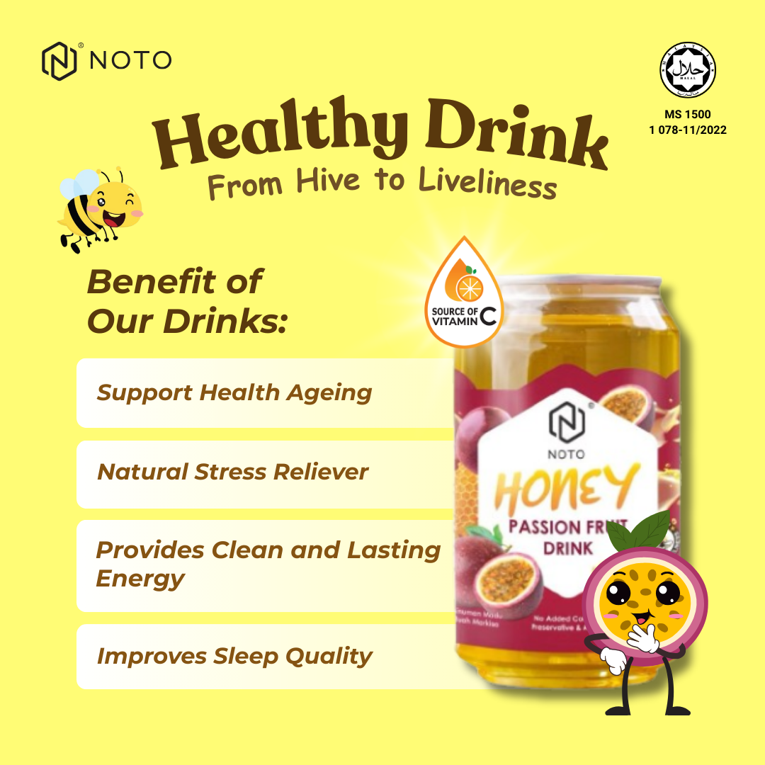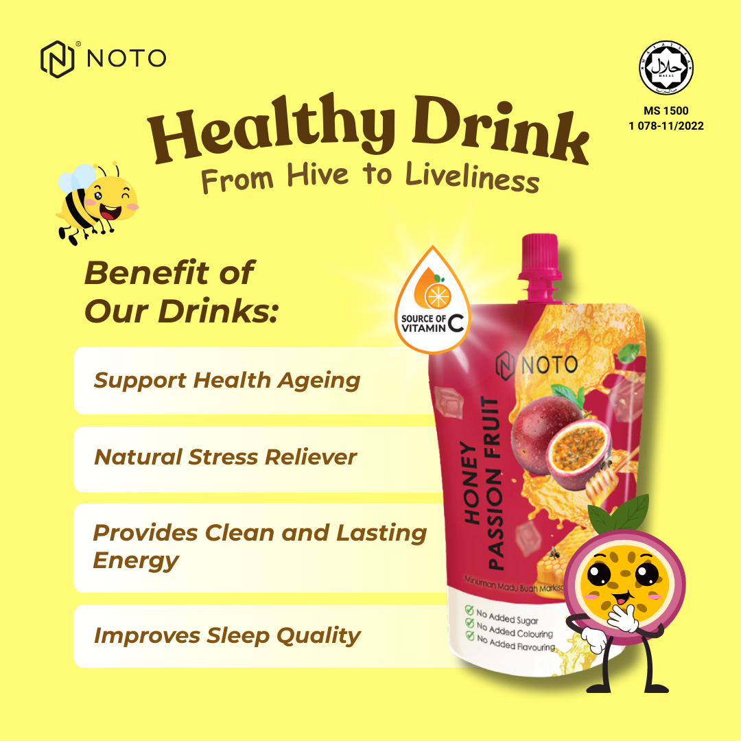 Minuman sihat dan menyelerakan yang diperbuat daripada madu asli dan buah markisa sebenar – rasa manis masam tropika yang menyegarkan dan berkhasiat. Sesuai diminum sejuk atau suam, bila-bila masa di mana jua!