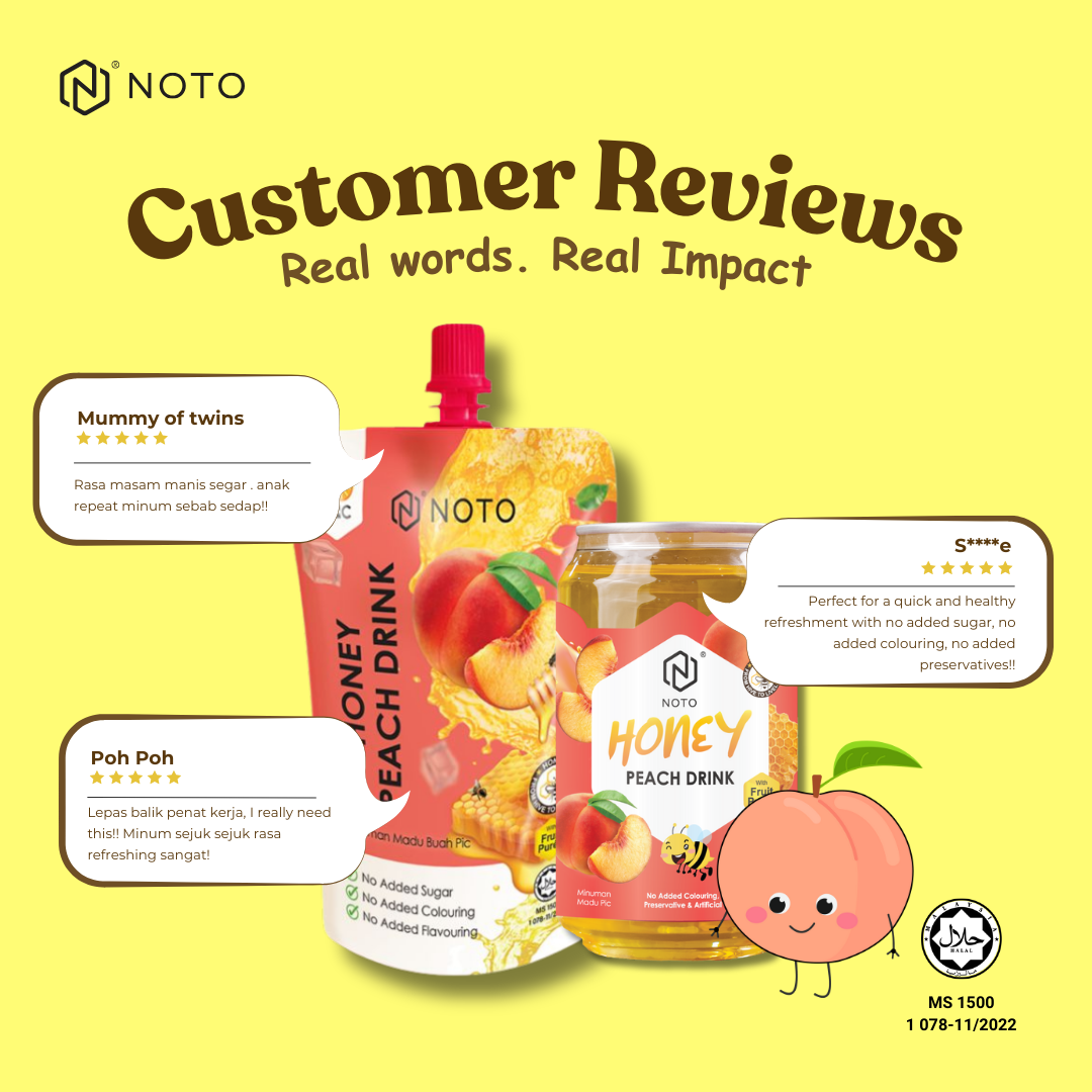 Nikmati gabungan sempurna madu asli & buah peach segar dalam satu minuman sihat yang sesuai untuk harian, kecantikan kulit, hydration dan juga travel.