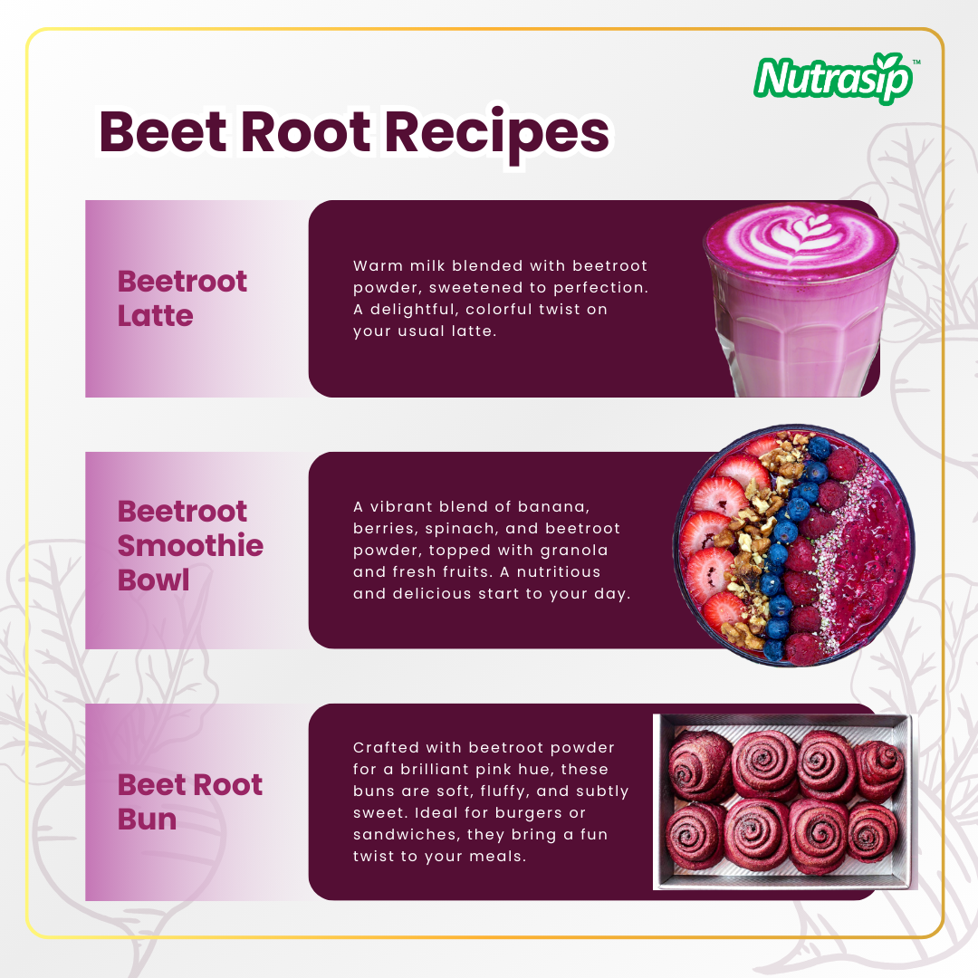 Serbuk jus bit bukan sahaja pigmen semulajadi untuk makanan dan minuman tetapi juga bahan yang bagus untuk makanan tambahan. Ia boleh membantu meningkatkan kesihatan dan kesejahteraan keseluruhan.