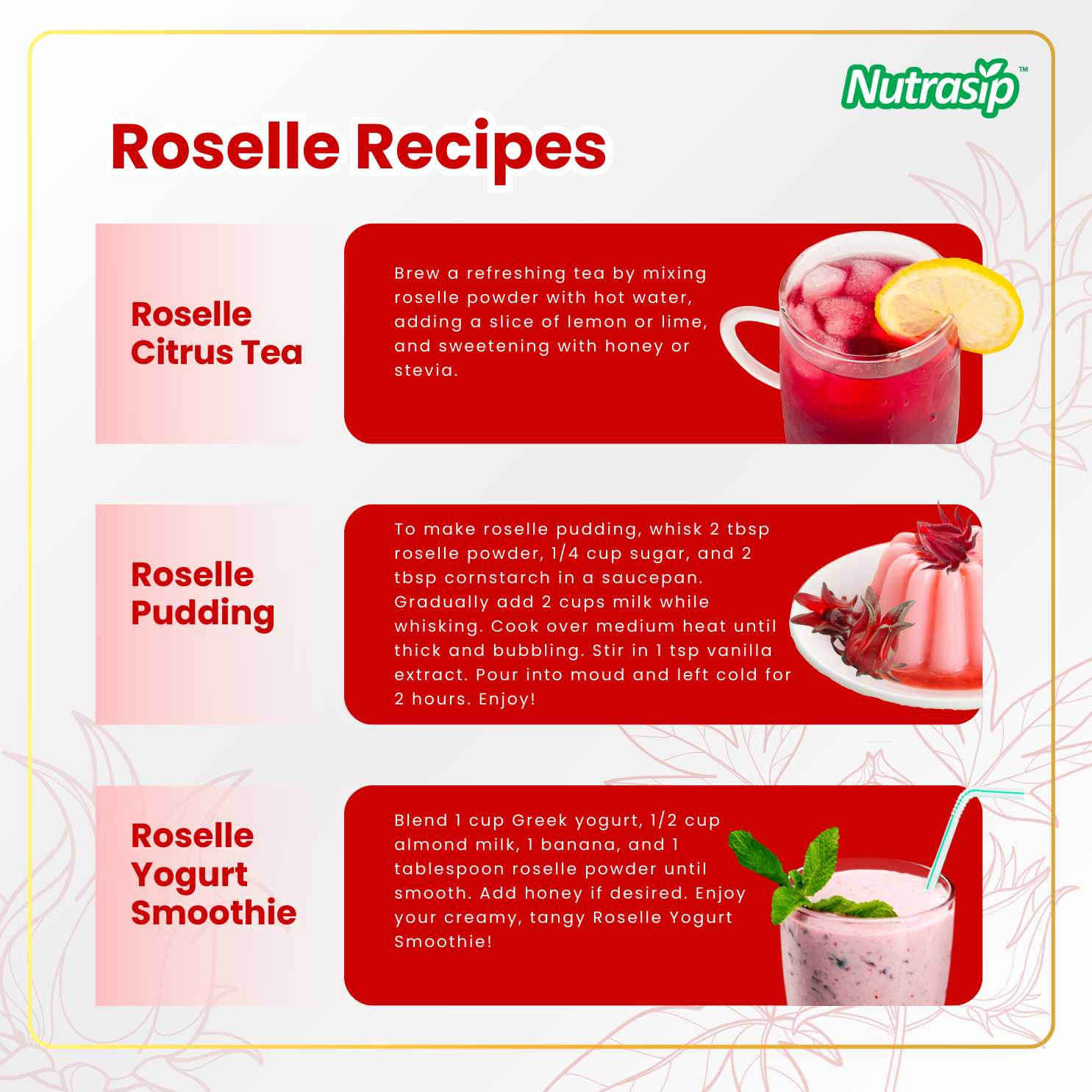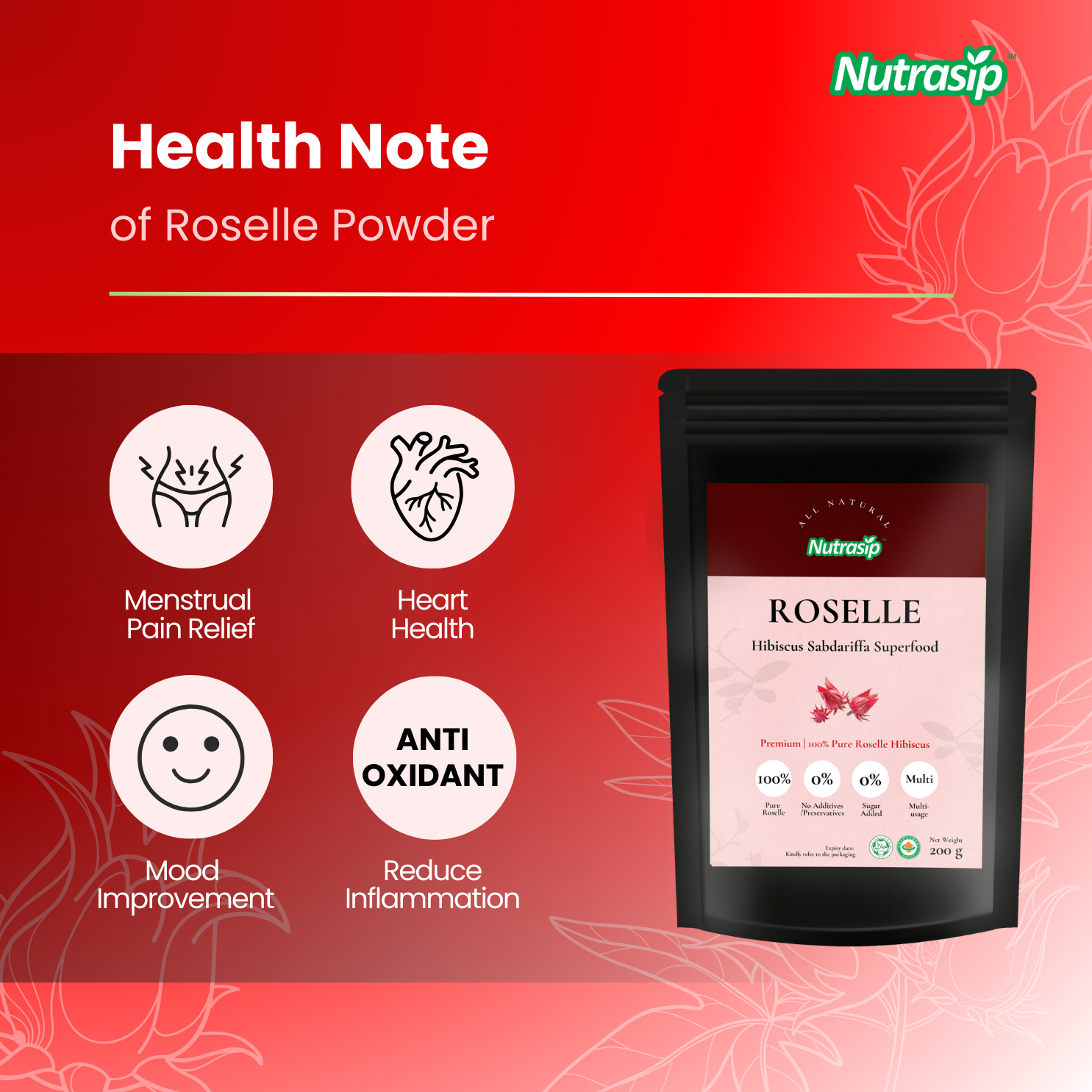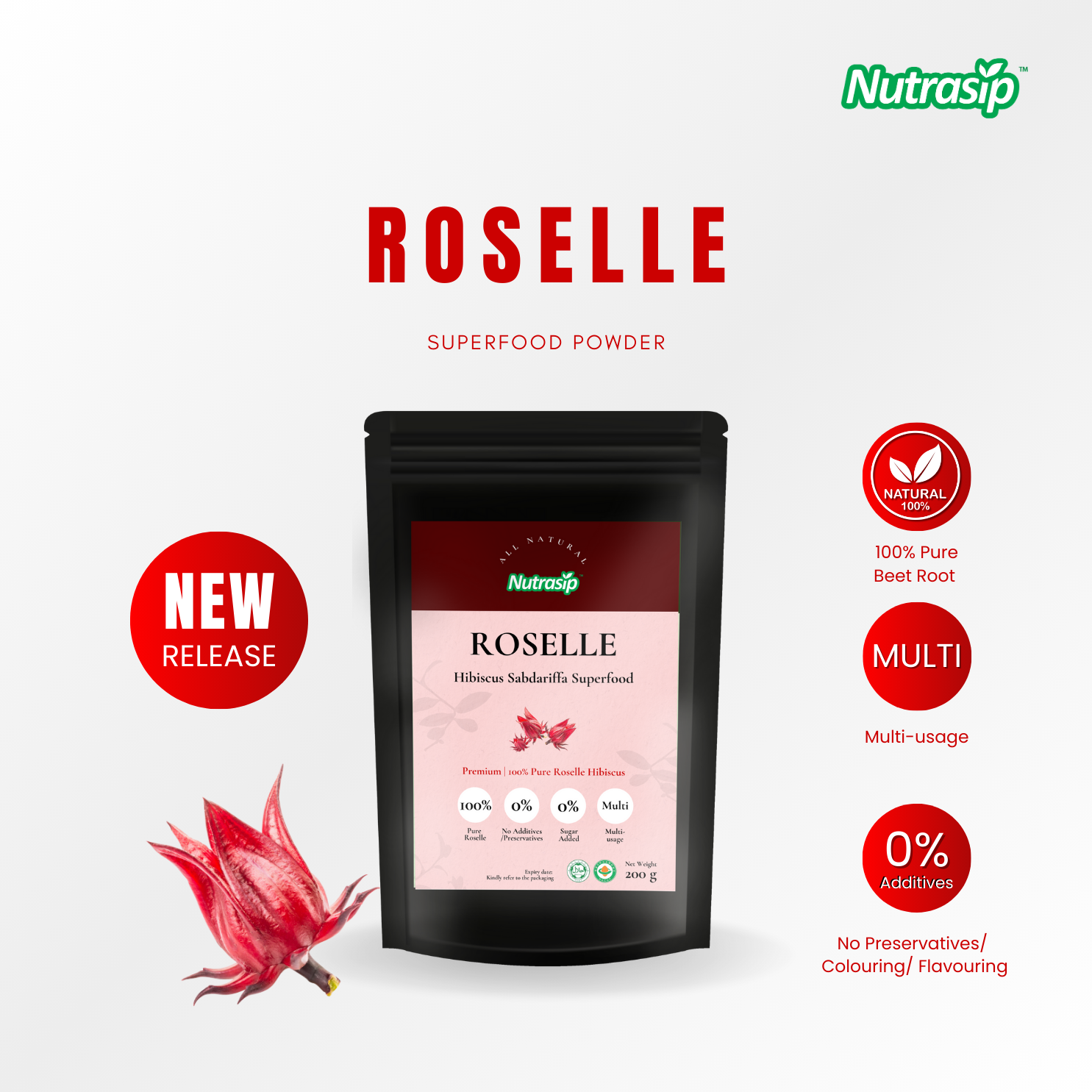 Serbuk roselle, yang berasal dari kaliks merah terang tumbuhan Hibiscus sabdariffa, adalah sumber nutrien dan rasa yang kuat. Ia adalah tambahan yang sangat baik untuk minuman, barang bakar, dan hidangan gurih, memberikan rasa masam seperti cranberry yang meningkatkan apa-apa resipi. Proses pengeluaran serbuk roselle termasuk pemekatan, pengeringan sembur menjadi serbuk, dan penyaringan serbuk melalui 80 mesh untuk memastikan konsistensi yang halus.