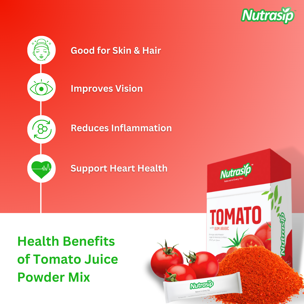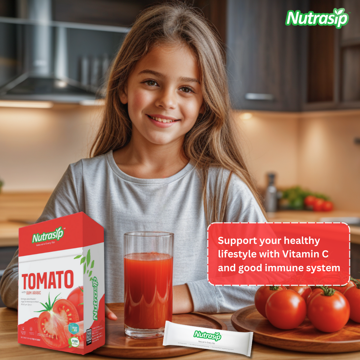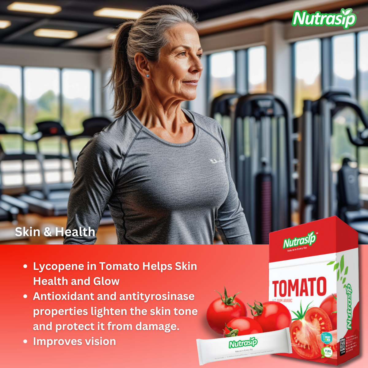 Tomatoes are rich in lycopene, an antioxidant that helps protect the skin from harmful UV rays and environmental pollutants. Here are some ways Nutrasip Botanical Tomato Drink Powder can help nourish your skin: