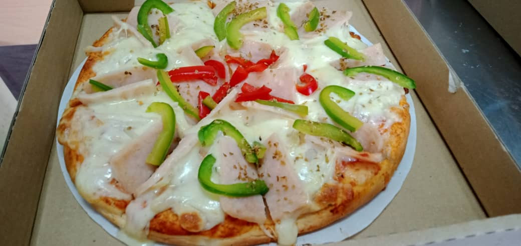 Tomato Concasse, Onion, Sauce Cheese, Mozzarella Cheese, Chicken Loaf, Capsicum, Oregano & Chili Flakes.