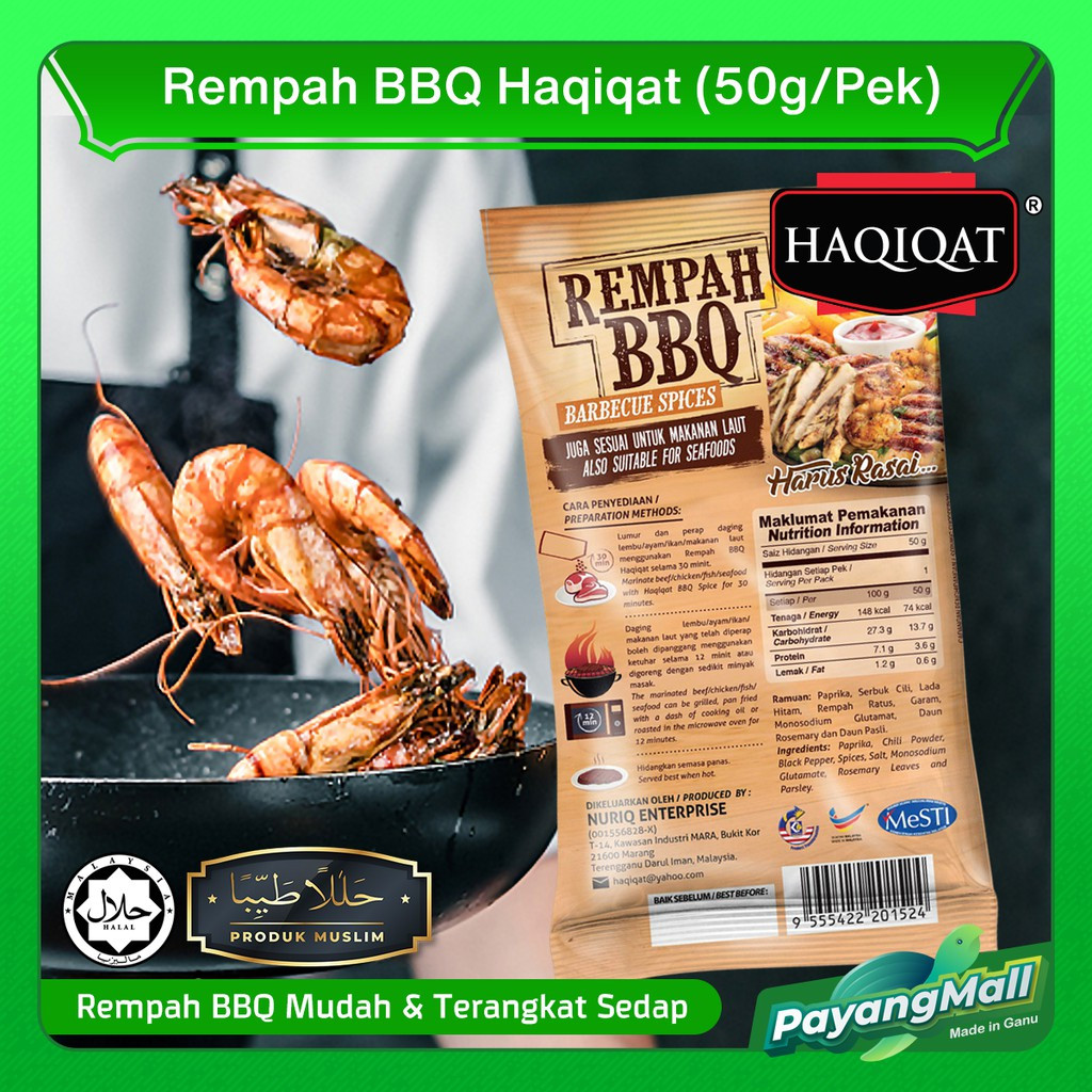 Benar lagi sahih.. Rempah BBQ Haqiqat.. boleh di gunakan untuk perapan ayam, daging, steak, lamb-chop, makanan laut dan boleh buat sos pasta tauu... nasi goreng maupun mee goreng... jgn tak chayerr...