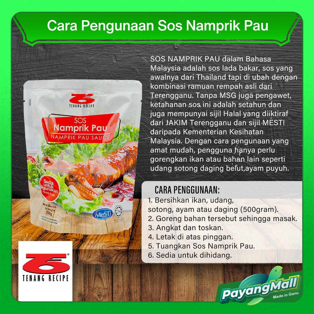 SOS NAMPRIK PAU dalam Bahasa Malaysia adalah sos lada bakar, sos yang awalnya dari Thailand tapi di ubah dengan kombinasi ramuan rempah asli dari Terengganu. Ketahanan sos ini adalah setahun dan juga mempunyai sijil Halal yang diiktiraf dari JAKIM Terengganu dan sijil MESTI daripada Kementerian Kesihatan Malaysia. Dengan cara pengunaan yang amat mudah, pengguna hanya perlu gorengkan ikan atau bahan lain seperti udang sotong daging belut,ayam puyuh.